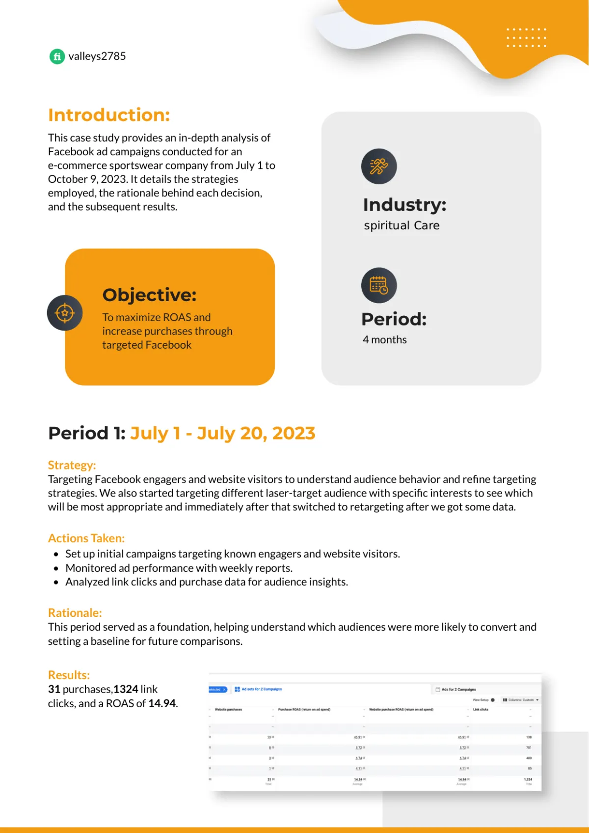 This case study provides an in-depth analysis of Facebook ad campaigns conducted for a spiritual care organization from July 1 to October 9, 2024. It details the strategies employed, the values guiding each decision, and the meaningful outcomes achieved.